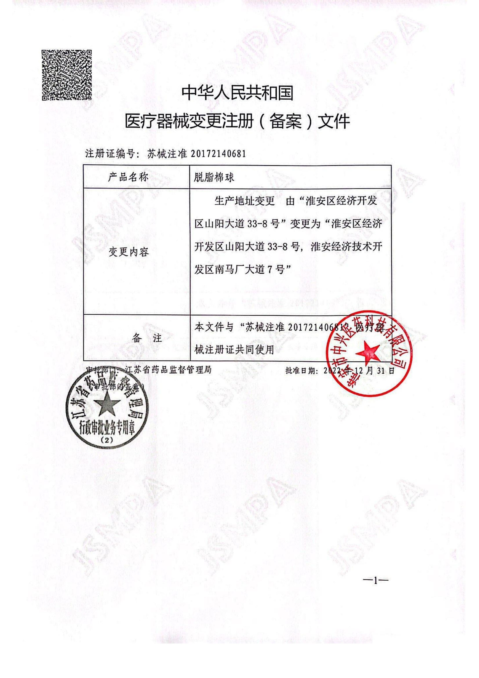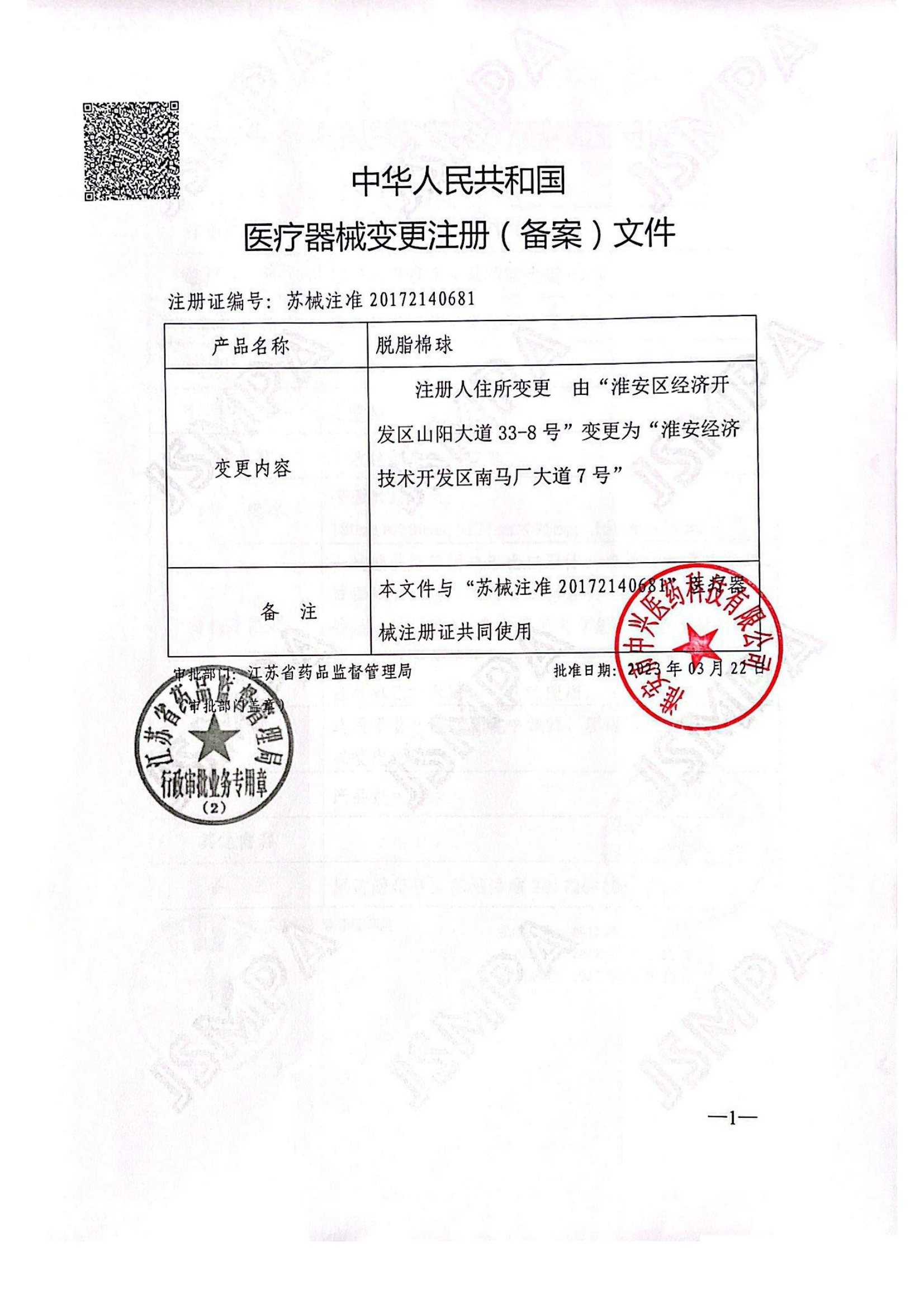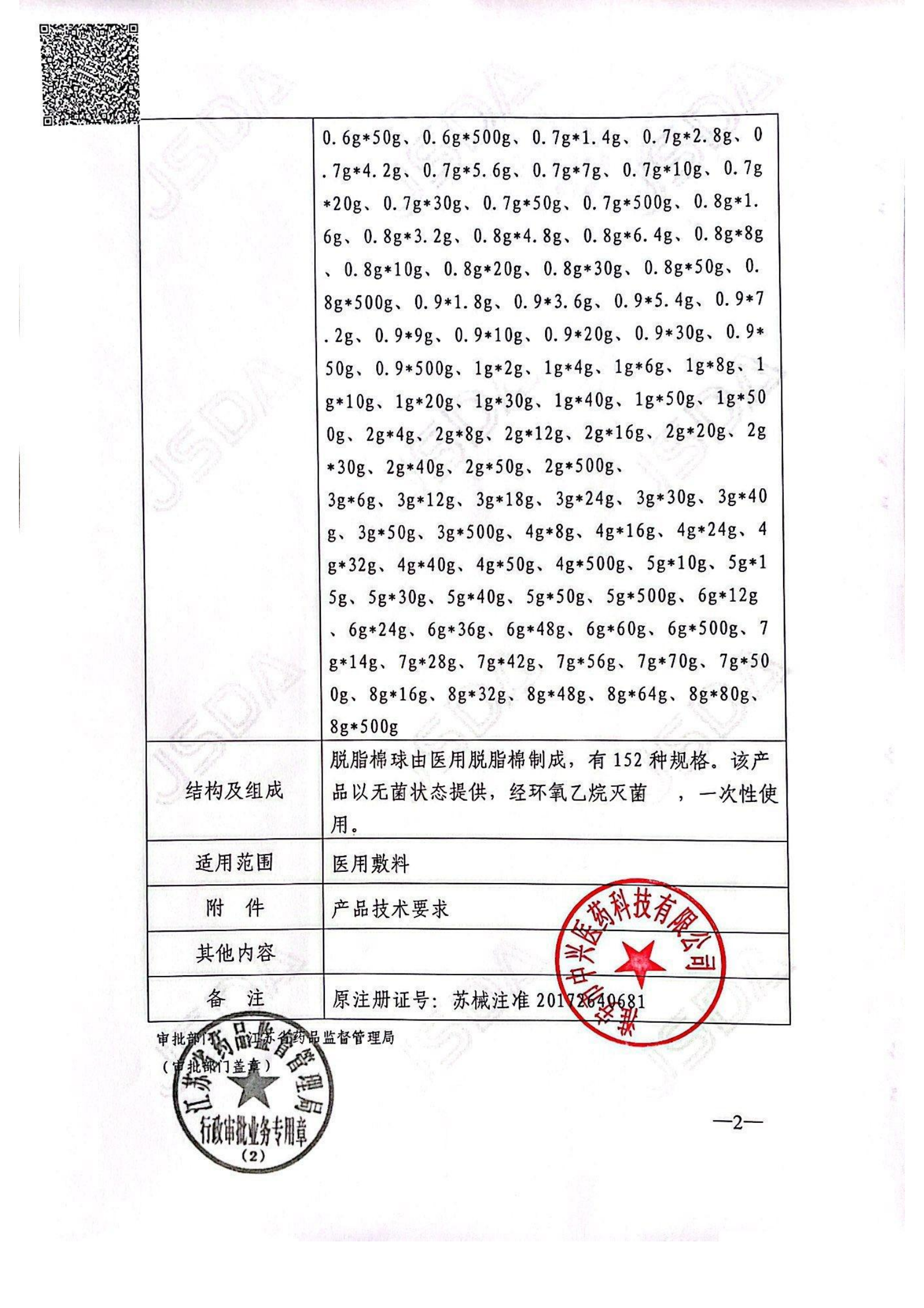 醫療器械注冊證(脫脂棉球)